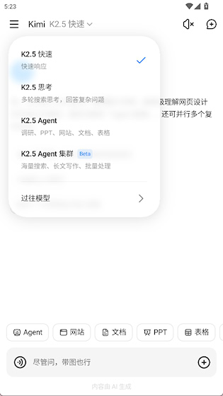 3、点击上方箭头可以切换到快速、思考等模式