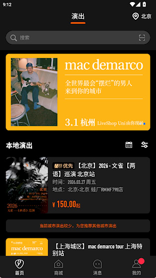 1、在首页查看和搜索演出