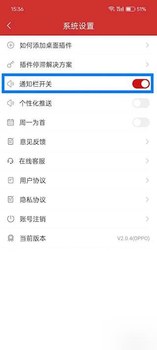 3、顺利进入系统设置页面,找到并开启【通知栏开关】。