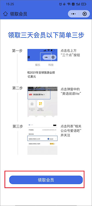 2、会员中心分为本应用VIP、全站VIP、黄金VIP,点击下方的“立即领取”按钮。