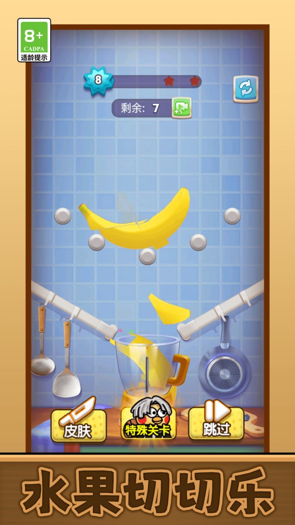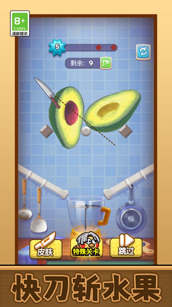 4. 场景适应技巧:经典水果店场景障碍较少,适合练习连击;未来厨房需利用果汁机关开辟路径;热带果园则需结合藤蔓摇摆规划切割顺序。