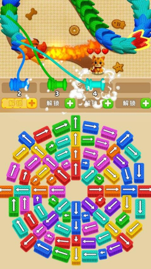 1. 核心玩法:玩家通过滑动屏幕缠绕恶龙身上的毛线,每圈缠绕需精准控制方向与力度,避免脱线导致恶龙反击。恶龙身体被缩短后,攻击范围与移动速度会显著降低,为营救小猫创造安全空间。