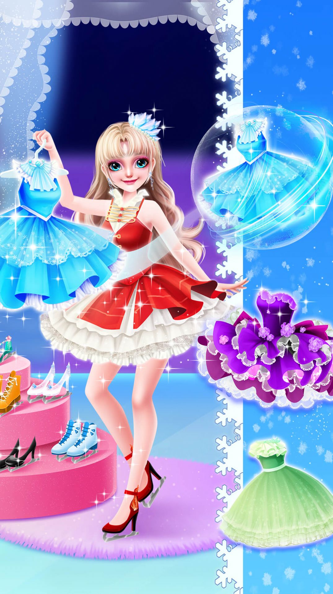 1. 公主角色:玩家扮演的主要角色,拥有独特的外观和技能,可以在游戏中展现自己的滑冰才华。