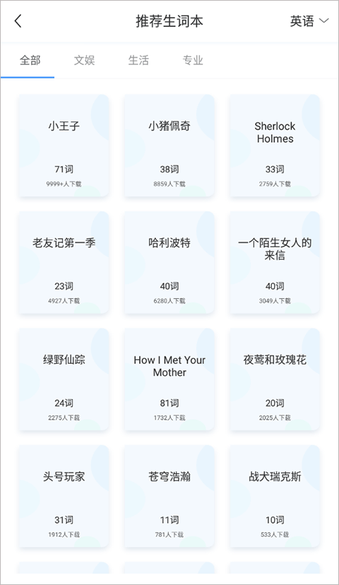 3、点击选中的生词本,等待下载完成后,该生词本会自动添加到生词本界面供使用。