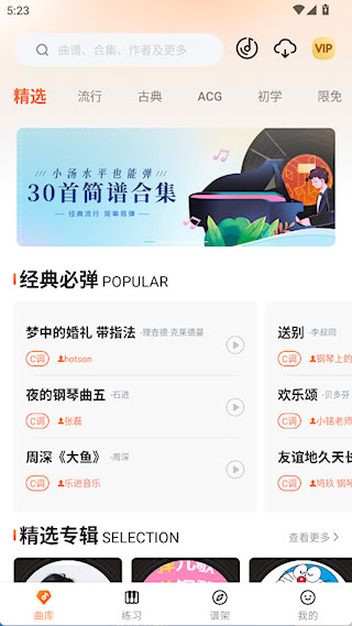 2、在曲库中有丰富的乐谱推荐