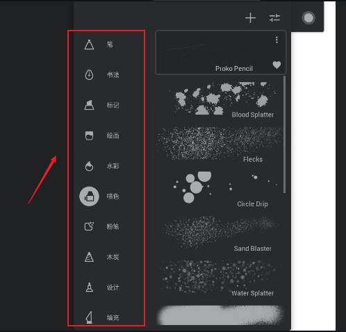 1、 丰富的画笔库:应用内置近200种画笔,涵盖自然媒介和专业设计画笔。