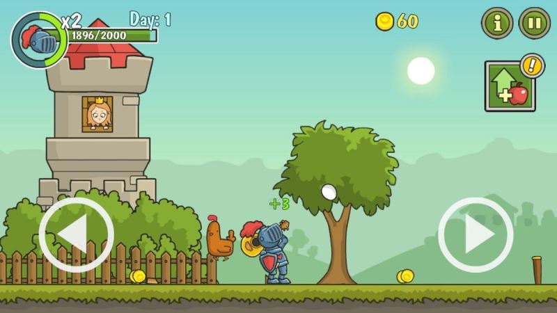 4、人物遇见鸡、困住公主的城堡时、会自动发起攻击。