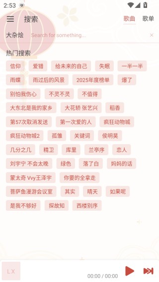 5、可搜索歌曲、歌手或专辑,输入相关关键词就能快速找到心仪音乐。
