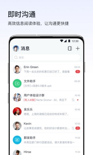 v消息app是一款非常不错的办公协同软件,可以在企业内部进行即时通讯,沟通交流,软件为用户提供了很多办公功能,可以进行考勤管理、日程管理以及在线聊天,随时随地享受便捷的移动办公服务,能够提升员工的办公效率,便于管理人员对企业进行高效管理,让手机办公更轻松。