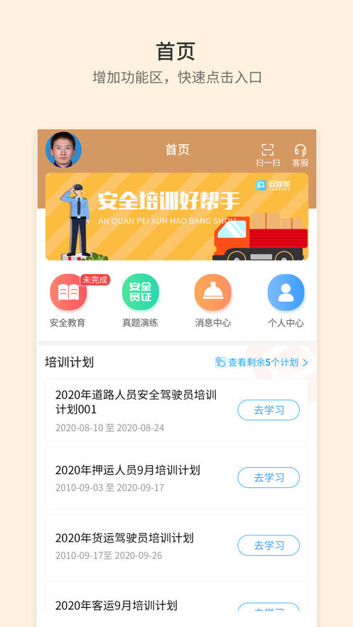 晋交安培app是专为交通安全培训推出的学习软件,软件为用户提供专业的培训知识课程,可以在线学习交通安全行驶法规,有安全教育、真题演练、培训计划等功能,视频课程教学,非常的生动形象,能够帮助大家更好的进行记忆学习,推荐给交通安全从业人员进行学习使用,让大家能够掌握交通知识,顺利通过考试。