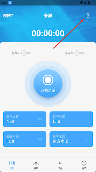 1、在首页点击右上角齿轮按钮