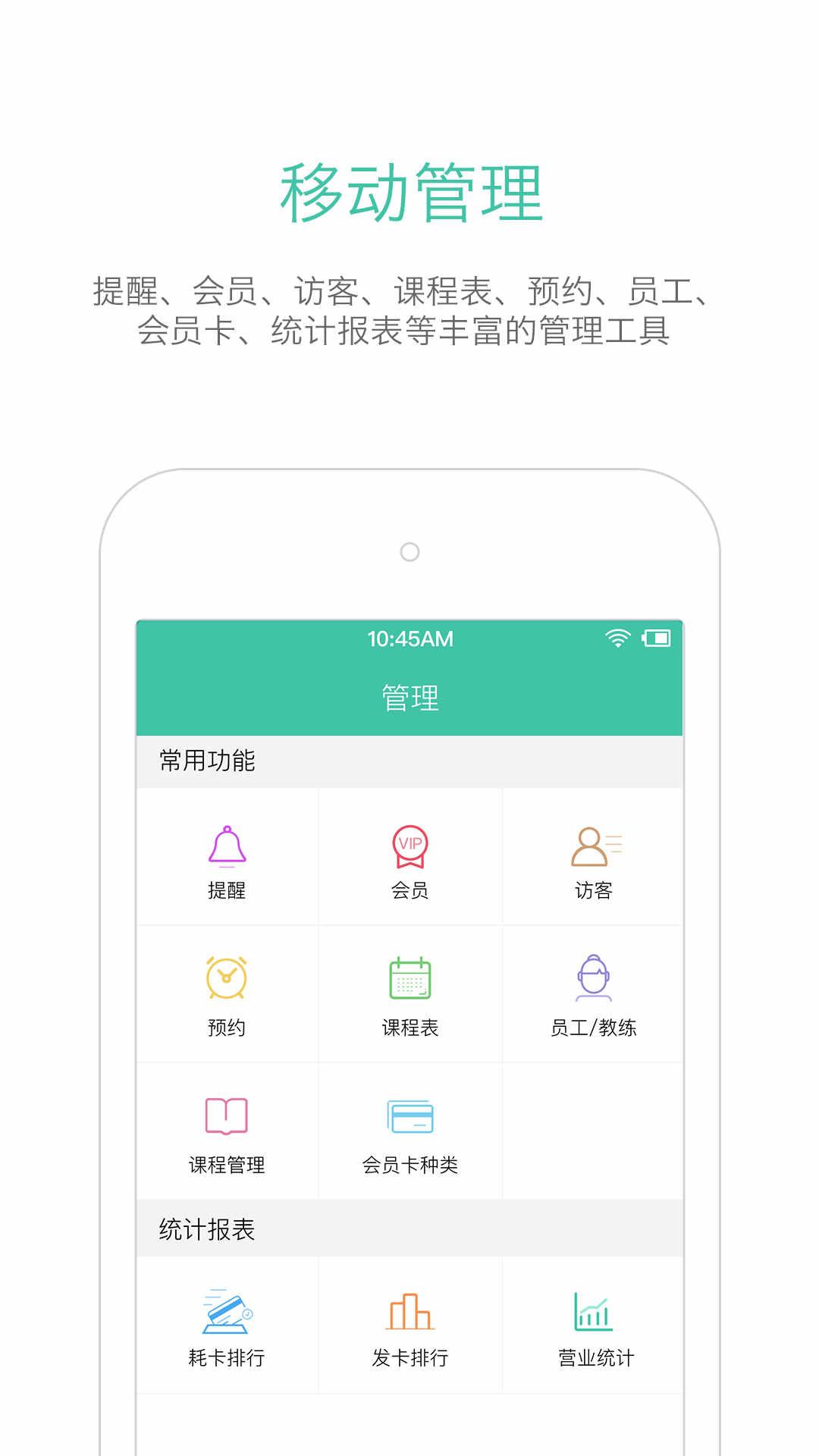 课程表、预约状况、耗卡情况等查询;多场景服务提醒;营业状况