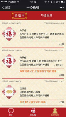 4. 等待祈福完成:寺院在收到祈福单后,会根据不同的仪轨如法完成祈福活动,用户可通过软件查看祈福进度及结果。