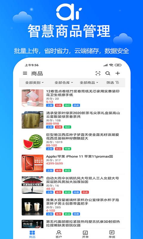 商家管理必备的软件《艾蜜云》推荐给大家,软件的功能十分多元齐全,全方面的进行商品管理,通过软件可以在线移动办公,随时查看商品的库存、销售情况,还能够了解员工的绩效情况以及业务进展,针对客户也有不同的处理沟通方式,让商家拥有更多客源,提升业务量,同时办公更加高效便捷。