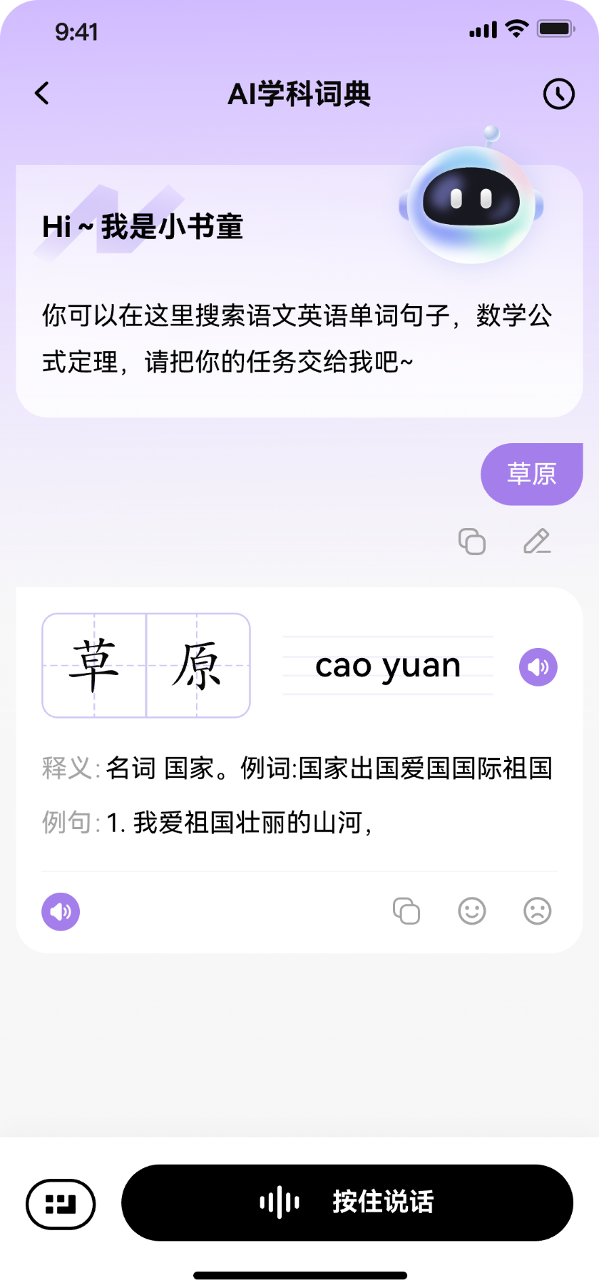 5、碎片化学习场景:等车、乘车等空闲时段,可随时查询单词、学习古诗,充分利用每一段空闲时间,积累知识。