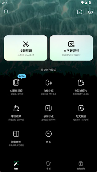 2、 一键成片:导入素材后自动生成完整视频,配有背景音乐和滤镜。
