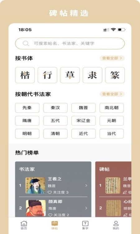 2. 打开应用,选择喜欢的碑帖进行临摹练习。