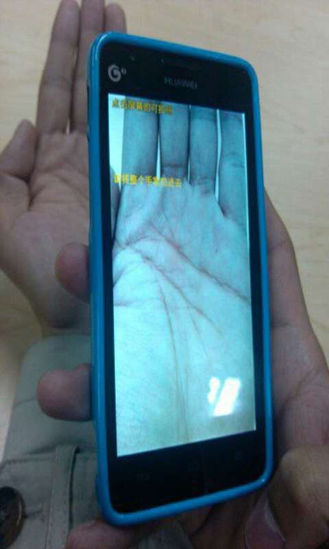 2、启动应用,根据提示通过设备内置的照相机取得手掌照片;