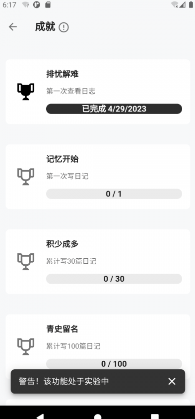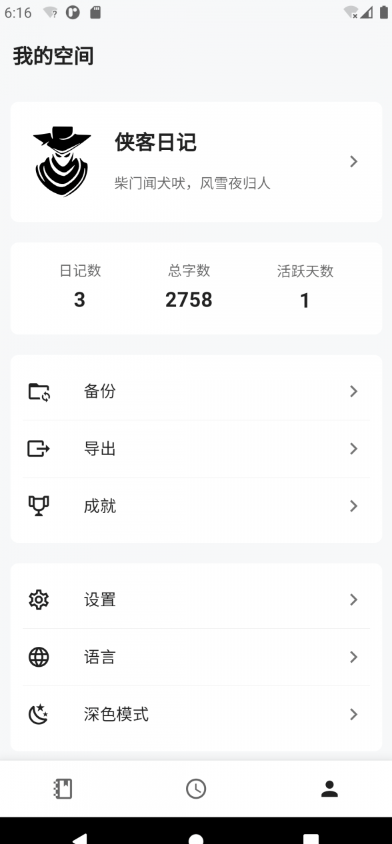 在侠客日记App上还有着成就功能,丢一次些日记、第一次查看日记、累计记录一定数量的日记都有可能解锁一个新成就,另外对于笔记的内容也为用户提供了多种记录方式,图片、录音、视频等都可以。