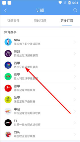 4、在 “更多订阅” 中用户可订阅感兴趣的体育竞赛与电竞赛事,也可利用搜索功能进行订阅。