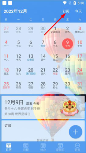 1、打开最美日历 app,进入首页登录账号,点一下 “日历” 版块。