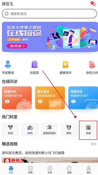 2、聚合全国多家三甲医院的专业医师资源,可按科室、疾病或医生姓名进行检索和预约问诊。