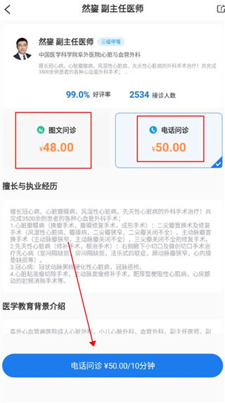 5、选择合适的问诊方式(如图文/电话问诊),确认选择
