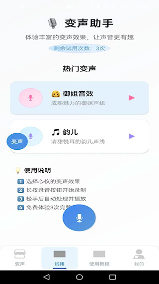 所有操作过程中建议使用普通话并在安静环境下进行,以保证最佳变声效果。悬浮窗口功能可快速切换不同音效,实时适应各种使用场景。