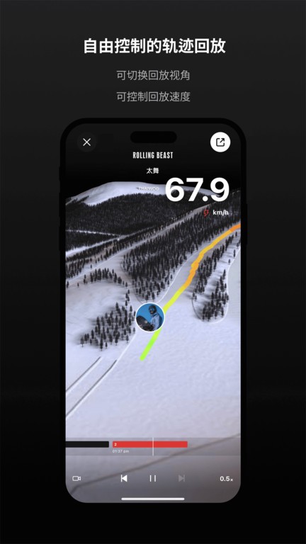 滚兽app是一款为喜爱滑雪的用户打造的工具,采用全新的3D技术,将整个滑雪场地都描绘记录下来,开启精准的定位功能,随时查看队友的位置。另外软件还有轨迹记录功能,划过一条雪道后会自动记录下来,结束后可以随时查看自己的滑行轨迹,还可以分段显示滑行的速度和曲线幅度。