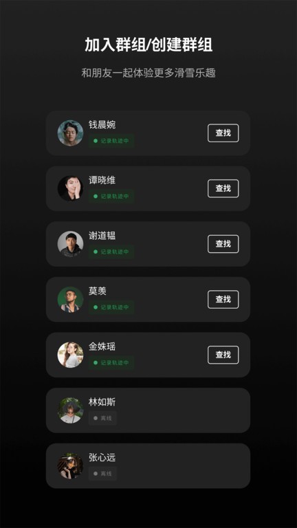 2、和朋友一起体验更多滑雪乐趣,一起加入群组/创建群组中去。