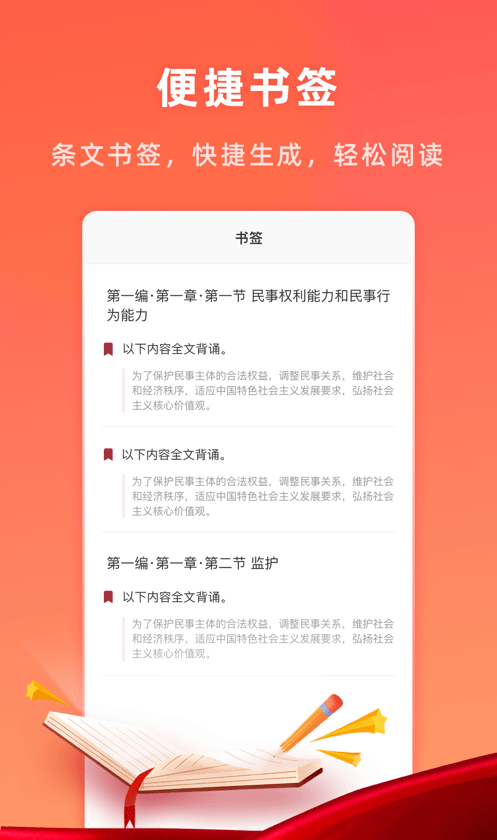 小法典app里不仅提供可靠的法律咨询服务,还有很多法律相关的知识,一些法学的学生也可以在这里寻找法律目录条例,在看的时候还可以随时添加书签,记录自己的见解。