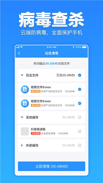 【极速清理】极速全盘扫描手机每个角落,一点垃圾都不留!