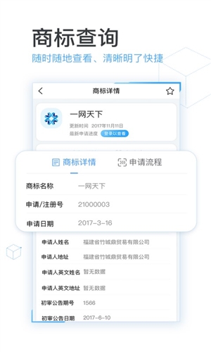 芝麻商标查询是一款专业的商标详情查询工具。帮助您在众多信息中找到潜在的商标业务,了解自身商标信息或者了解竞争对手的信息,商标动态尽在掌握,用大
