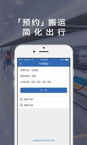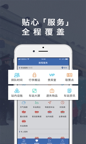 轻松获取: 行李搬运在线预订,遗失物品在线挂失 根据您的行程,自动呈现旅程所需服务,轻松明了 还将为您提供旅程常见的出行常识,车站发布的全新公告… 给您更好的出行体验,铁路伴侣,全程陪伴!
