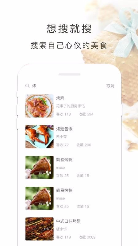 1. 搜索关键词:在搜索框输入食材名称或烘焙类型,快速找到心仪的食谱。