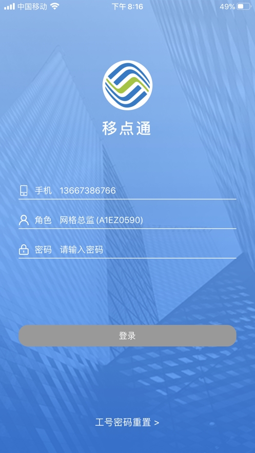 1. 实名制登录移点通,选择业务办理功能。