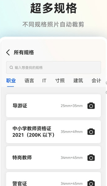 2、所有的证件尺寸都是设置好的,你只要选择你需要的尺寸就可以了。