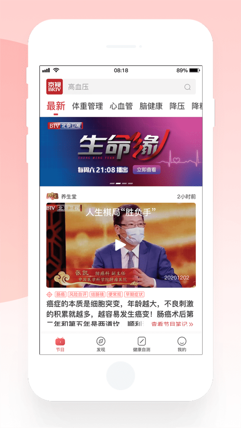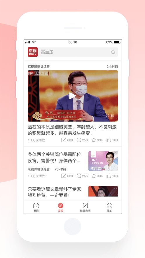 大家有没有看《我是大医生》这个养生节目,很多小伙伴现在都非常关注养生方面的知识,通过《京视健康》可以更好的了解各种健康知识和养生技巧,软件每天都会有各种养生健康文章推荐给大家,还有各种健康食品和名医直播,让大家可以随时了解学习,时刻关注自己的身体,拥有健康生活。