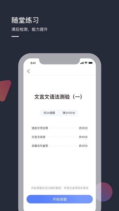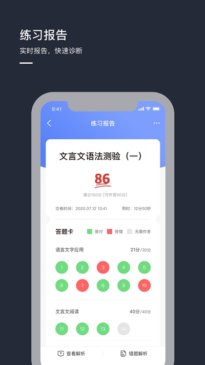 3. 练习与测试:支持在线做题练习,练习结束后可查看分数和解析,巩固学习成果。