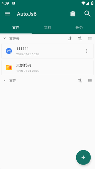 1、打开Auto Js 6 App,进入主界面后点击添加按钮,开启项目创建或导入流程。