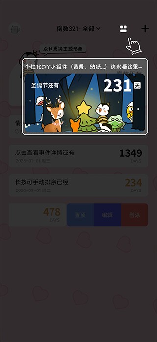 2、点击软件右上角按钮,可自由进行个性化diy小组件设置,适配桌面展示需求。