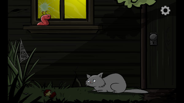 第二关:点门把,猫来,点蛛网,点烂苹果,虫吐浆,猫走,点猫,猫又来,点门上树影,进洞,狂点4个钮,出来,点猫,猫死,点门把,过。