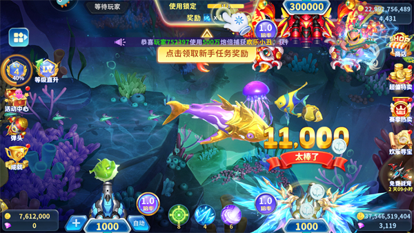 多样劲爽酷炫炮台皮肤,子弹爆炸特效,还有多样的华丽翅膀,让您在捕鱼的世界也能惊艳众人,震撼全场。
