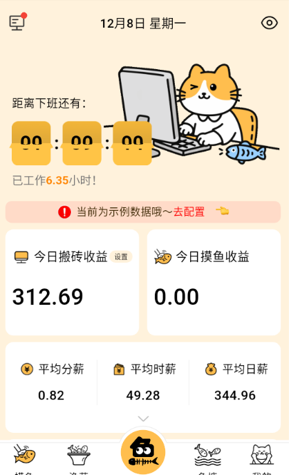 1、搬砖收益:依据月薪自动核算当日收益,直观查看实际收入情况。