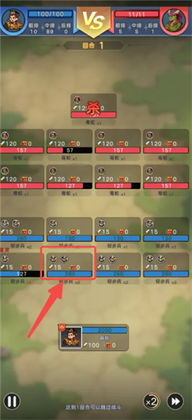 3、当出战总数量超过100个兵之后,兵会堆叠起来,比如2个兵堆叠在一起,站在一个位置(生命叠加,造成双倍伤害);