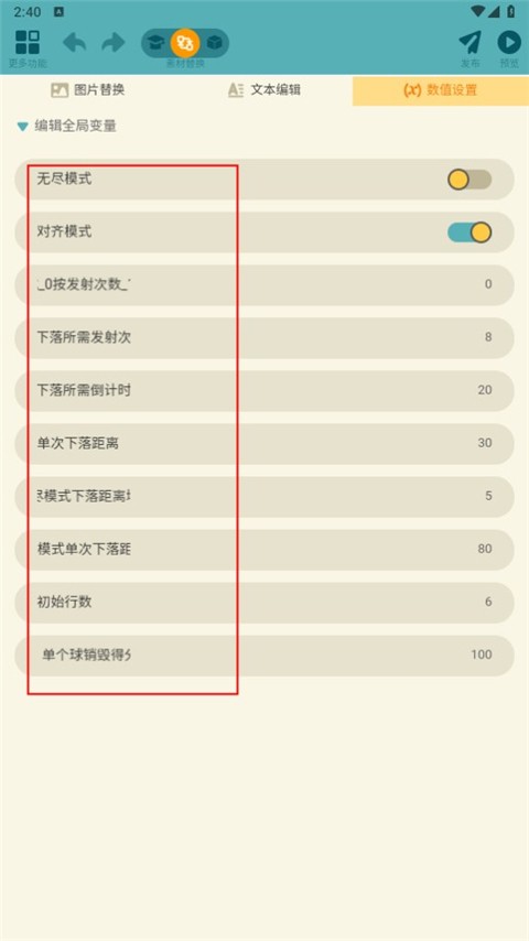 6、创作过程中,可根据游戏需求,自由设置各类数值参数,优化游戏体验。