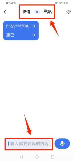 2、切换至汉藏语互译模式,输入文字内容即可获取翻译结果。