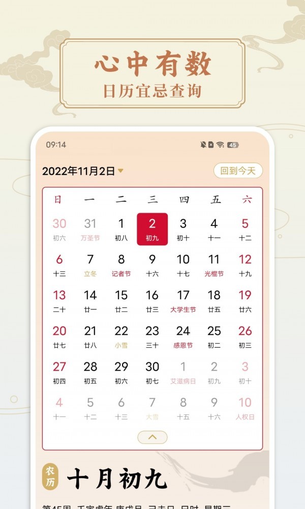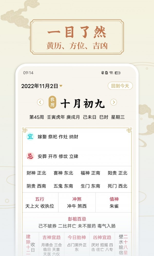2、搭配独家每日宜忌的记事功能,轻松安排日程。