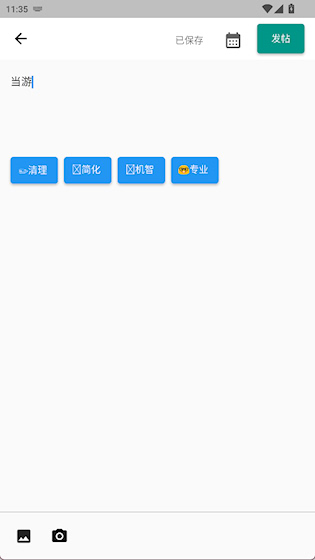 2、输入内容后,点击左下角按钮添加图片
