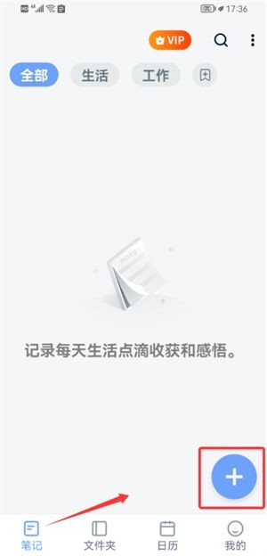 1、启动软件后,在主界面右下角找到蓝色添加按钮,点击就能创建新笔记。
